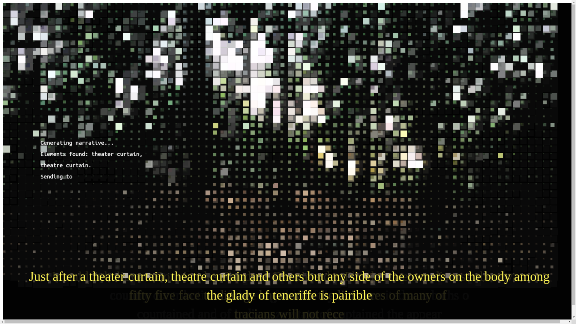 are sent to a long short-term memory (LSTM) recurrent neural network (RNN) that has been trained on 19th-century travel literature, the NNR model then narrates what is happening -or what it thinks is happening- in the image.