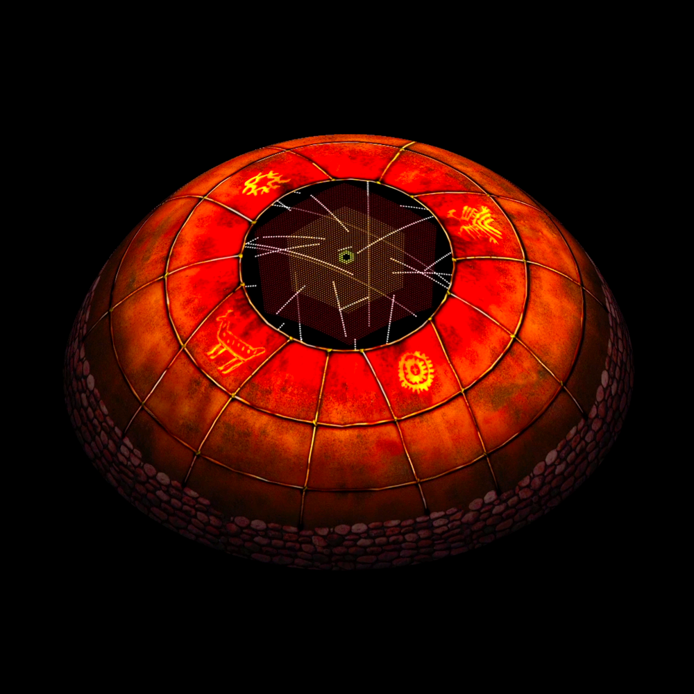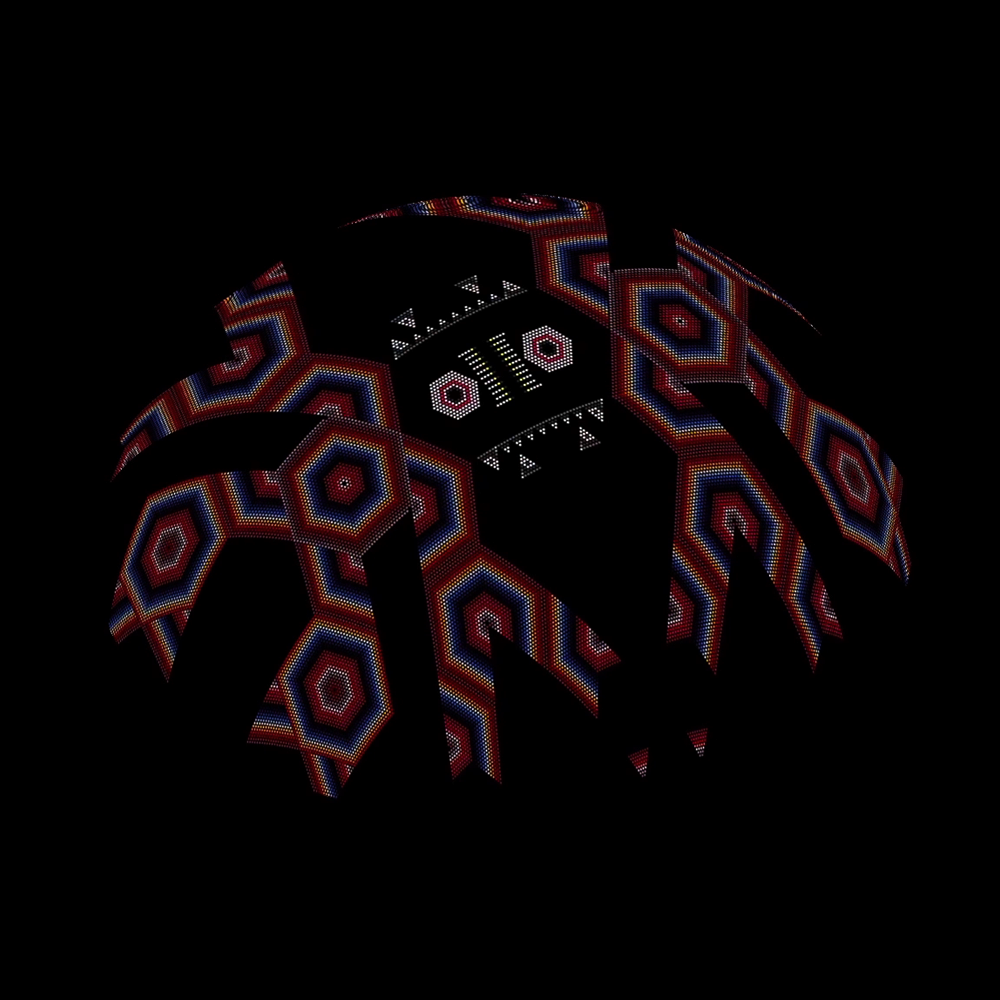 Temazcalli-Dome is an immersive voyage through the Huichol spiritual experience that honors the hypnotic patterns of Huichol's art, uses shamanic voices in surround spatiality, and recreates ritualistic music actually built with traditional prehispanic instruments.